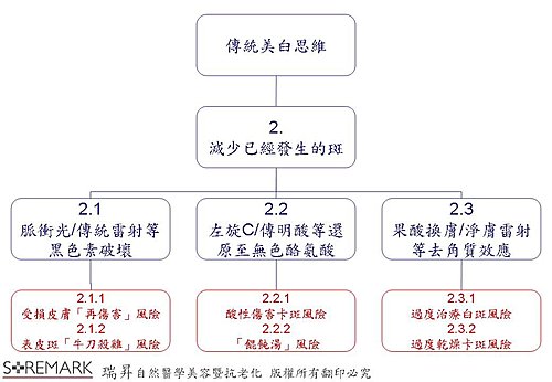 如同前述,一旦討論「斑」的形成,大家思考的都是「抑制斑的發生」與「減少已經發生的斑」。從邏輯大方向思考,這兩個思維是完整的、充分的。然而更詳細地看,這兩個思維的「子思維」卻是不夠周密的。
