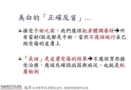 同樣是「一刀兩刃」的辨證—如果受術者的皮膚已經受傷,「在受傷的皮膚上使用雷射手術」(再提醒一次:雷射是一種「手術等級」的傷害程度!),結果一定會是「反黑程度比原先更黑」或「敏感狀態比原先更敏感」!