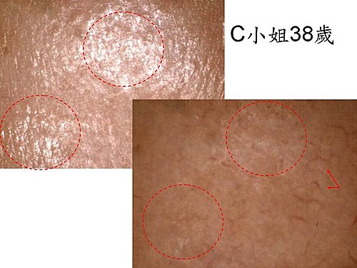至於「酸性保護膜為什麼會缺失呢?」詳細情況請看「三通」相關文章;要提醒的是:酸性保護膜缺失後,皮膚更加乾燥。在這些「更加乾燥」的皮膚上使用略帶酸性、滋潤度相對低的酸類產品(左旋維他命C就是「抗壞血酸」;除此之外,還有維他命A酸、杜鵑花酸、傳明酸、果酸、苦杏仁酸…),當然會使得乾燥情況更加嚴重;結果就是角質堆積益形惡化,卡斑惡性循環不止…