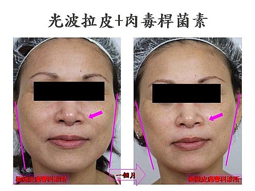 國字臉治療中,以肉毒桿菌素之治療效果最佳。但肉毒桿菌素治療,局部肥大肌肉瘦小後會產生兩頰肌膚下垂現象。